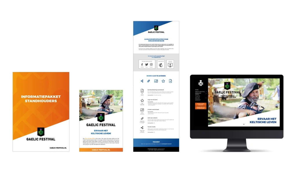 Kleurgebruik blijft een lastige kwestie. Welke kleuren zijn er nou mooi te combineren? Het blijft een zoektocht naar de perfecte combinatie. Maar al passen kleuren bij elkaar… roept de kleur wel het juiste gevoel op bij de ontworpen identiteit? Bij het Gaelic Festival was het net zo’n zoektocht. Al ligt het resultaat achteraf gezien redelijk voor de hand.